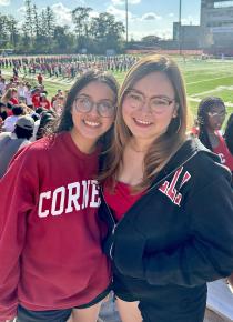 I chose these photos because they capture two significant milestones in my journey at Cornell, each representing a unique aspect of my college experience. The first photo (above) holds special meaning as it depicts my excitement attending my first homecoming game. This event symbolized a sense of unity and school spirit that I had eagerly anticipated, especially after navigating the challenges of hybrid learning during my first year at Cornell. Sharing this experience with one of my closest friends added to the joy and created memories that I will always cherish.