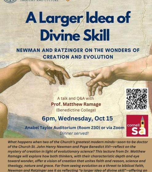A talk and Q&A by Prof. Matthew Ramage (Theology, Benedictine College) | Respondent: Prof. Jeff Doyle (Professor Emeritus, Plant Science, Cornell) | Cosponsored by Cornell Catholic Community and the Society of Catholic Scientists