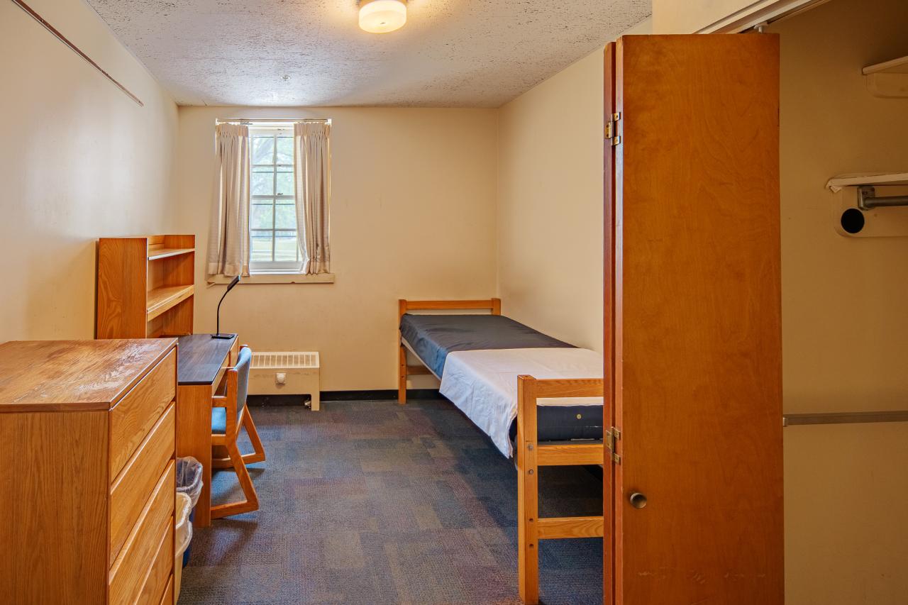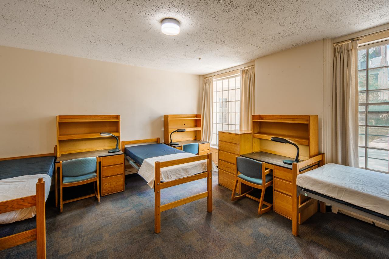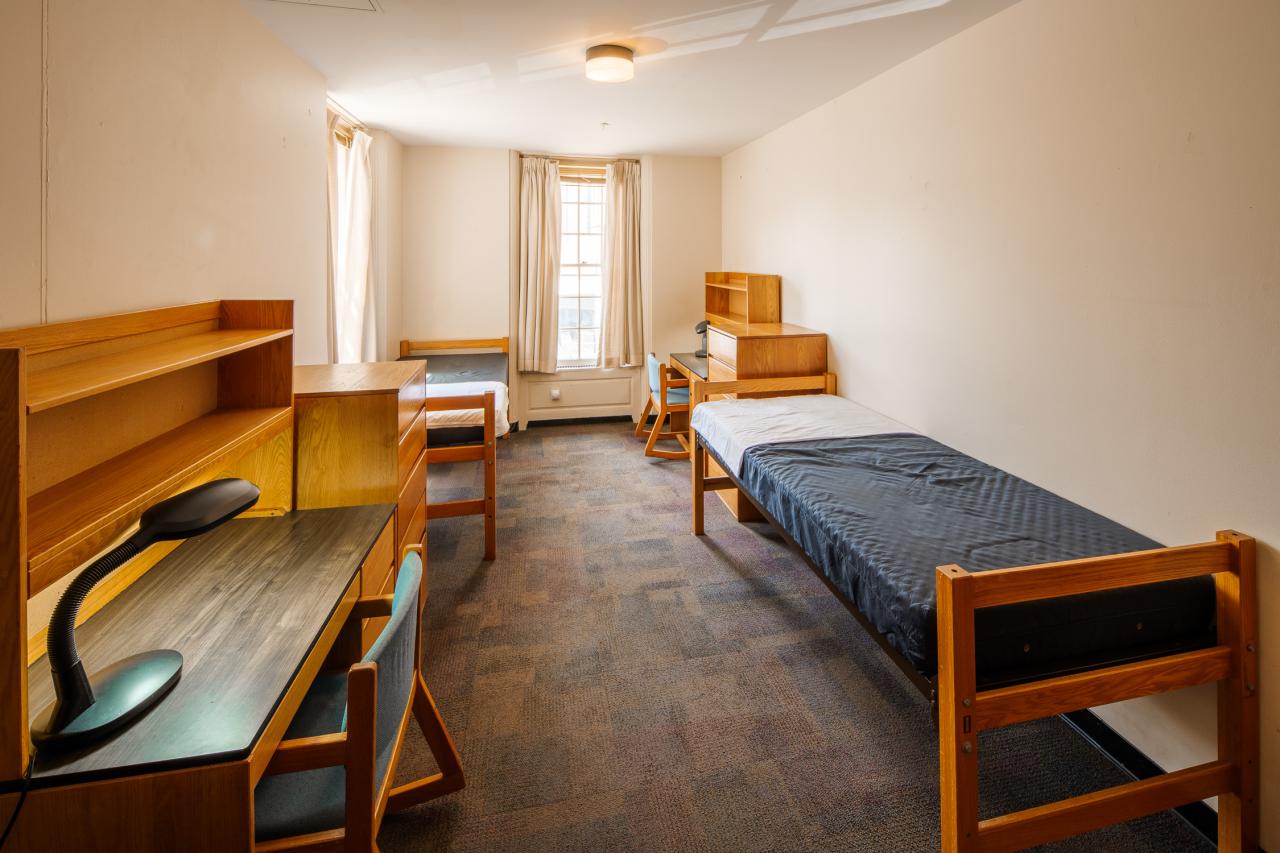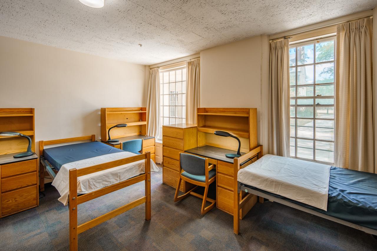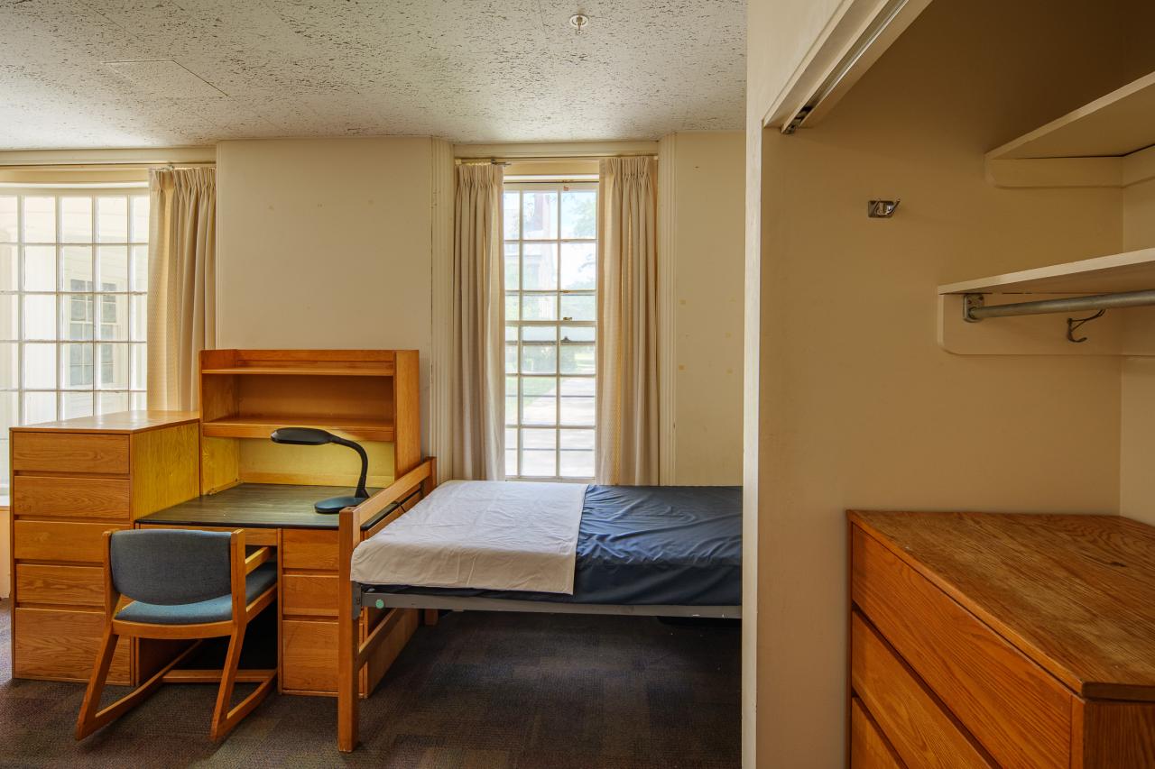 - Bedrooms contain, for each occupant: an extra-long twin bed, a closet and a bureau (or wardrobe/bureau combination), a desk, a desk lamp, a wastebasket, and floor carpeting