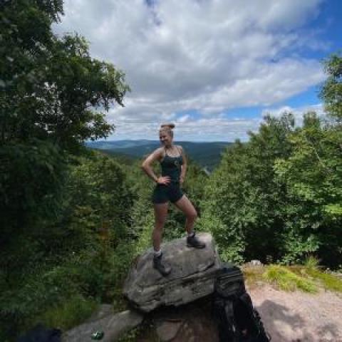 Hi everyone! I'm Emma Jeffrey! (she/her) I’m from New Hampshire, and I’m a sophomore here at Cornell. I’m in the College of Arts and Sciences, still deciding what to major in, but I really like physics and studying Environment and Sustainability. I might add a Spanish minor too! In my free time, I’m a part of Cornell Running Club and Salsa Pa'lante (a dance group), and I love skiing, crafting, and, of course, hiking and being outside!