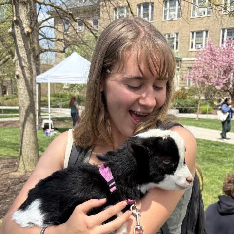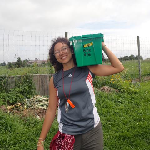 Goofy goober and snacking extraordinaire Aislyn Berg hails from Eau Claire (music city!), Wisconsin. She's a second-year majoring in Biology & Society with minors in French and Community Food Systems. You can often find her in the garden, at the climbing gym, or splashing around the waterfalls and lakes of Ithaca. Ask her for a carrot stick- she probably has one :)