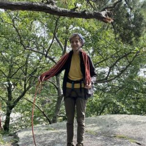 Hello! My name is Tyson Russell (he/him), and I am an Odyssey guide and Mechanical Engineering major in the class of 2028. I grew up in Boise, Idaho, where I gained a love for the outdoors through skiing, mountain biking, climbing, and river surfing. At Cornell, I've had the privilege of getting involved with COE and I routeset and teach at the climbing wall. Odyssey is awesome and I'm psyched to meet you all!